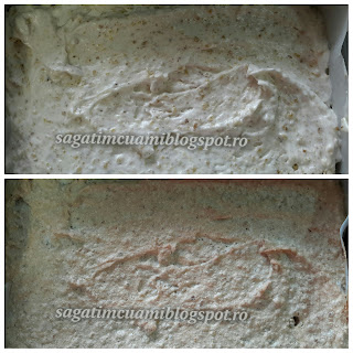 - compozitia asta se pune in tava tapetata cu hartie de copt si se coace in cuptorul incins la 180 grade cam 30 - 40 minute sau pana trece testul scobitori.